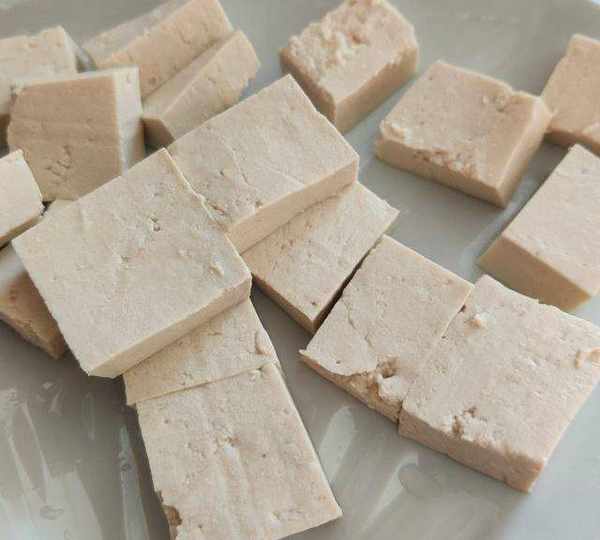 第2步、北豆腐切成小塊兒。