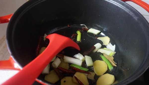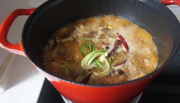 琵琶腿1000克生抽一勺老抽一勺料酒一勺大蔥一根八角2顆桂皮一塊花椒適量幹辣椒適量生薑一塊
