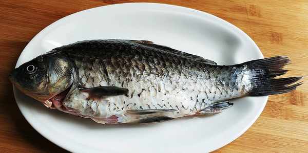 1、買回來的鯽魚清洗幹凈,撕掉肚子裡的黑膜,裡裡外外均勻的抹上一層食鹽,醃制一會。(現在買魚不管是農村還是城裡,商販都會幫你殺好,刮去魚鱗,這樣回傢就省事多瞭。)