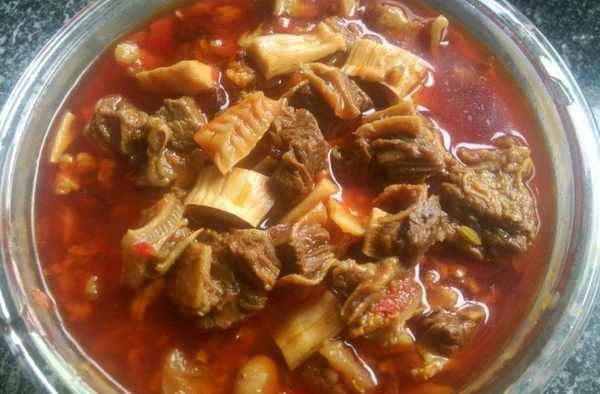 1、牛肉切塊焯水撈出,土豆和胡蘿卜洗凈去皮用滾刀法切塊(小小提示:我們也可以用筍子,根據自己愛好吧)