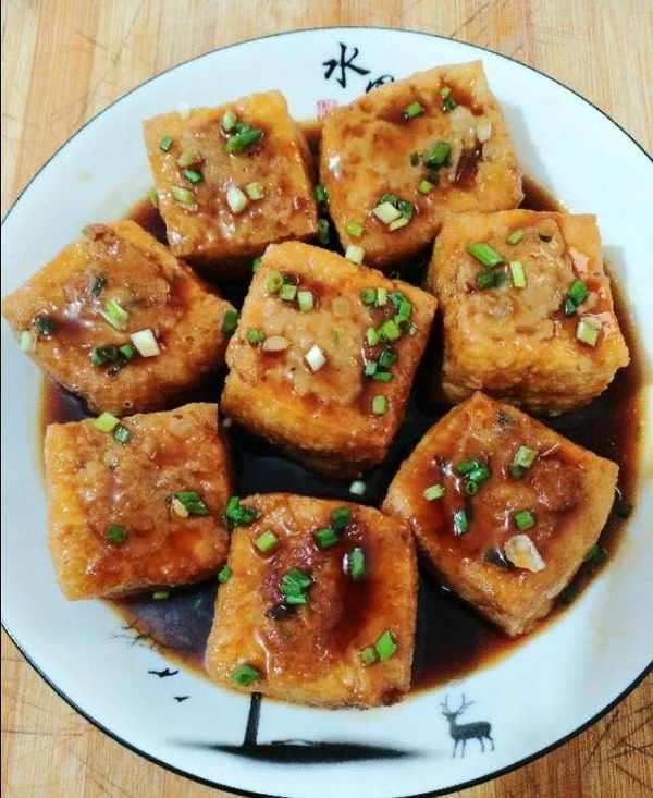 9.十分鐘後,開大火收汁,撒上香蔥,出鍋即可。一道簡單的傢常紅燒油豆腐塞肉就做好瞭,葷中有素,素中帶葷,肉與素的組合,湯汁飽滿,味道鮮美,讓人回味無窮。如果您也喜歡,那就趕緊試試吧。