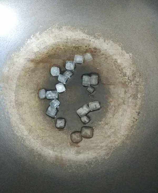 2.鍋裡放油,放入冰糖,小火炒糖色