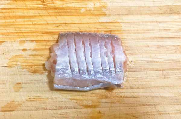 1、先將帶魚沖洗幹凈,然後再用刀剁成小段,最後在魚肉上面劃幾刀,這樣吃起來會更入味。