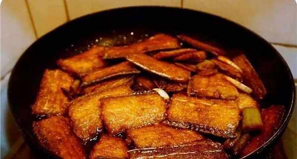 起鍋開火,倒入適量食用油,油熱後,把帶魚一個一個的下鍋煎,切記不要著急,先一面煎至定型金黃的時候,再翻面煎另一面,等煎至兩面金黃,即可關火,接著往鍋裡面放入蔥段、薑片、大料、冬菇、冬筍,大火煸炒出香味,然後加入料酒、醬油、雞精、鹽、糖、醋和少許清水,大火燒開煮沸,然後轉小火再燒制七到八分鐘,帶魚收汁,滴上幾滴香油,即可出鍋裝盤。紅燒帶魚的傢常做法,咸鮮適口,色澤紅亮,是記憶中最愛的味道!