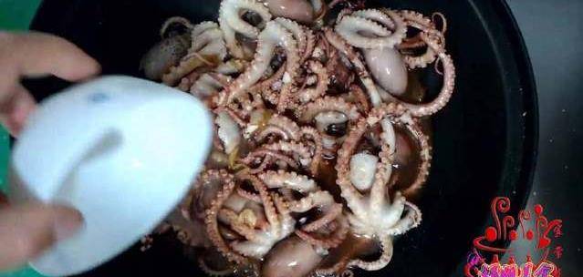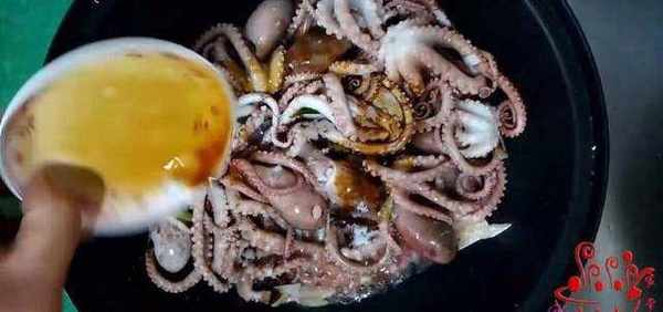 5;加入章魚翻炒