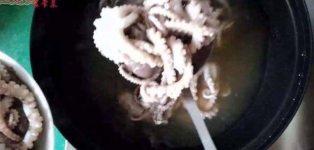3;洗幹凈的章魚彷如燒開的熱水中焯一下撈出控水備用