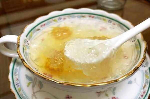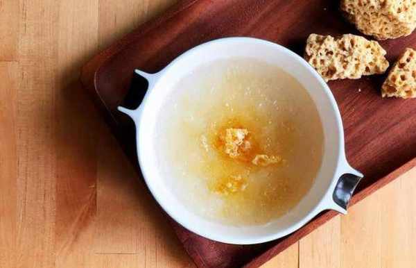 3、準備一個碗,碗中放入適量石蜂糖,倒入燉煮好的燕窩,攪拌均勻即可食用。