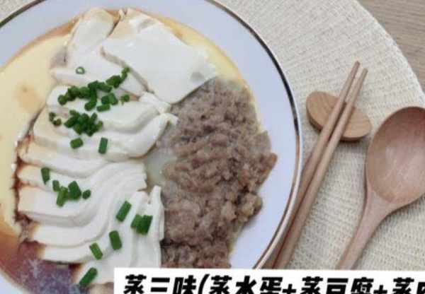 第四道菜蒸三味(蒸肉餅+蒸豆腐+蒸水蛋)