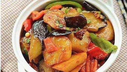 做法:將茄子和土豆去皮,切成滾刀片;青椒掰成小塊。鍋中多放一些油,燒至七成熱,現將土豆塊放進去,炸至金黃色,略顯透明的時候撈出。再將茄子倒進去,炸至金黃色,加入青椒塊一起撈出。鍋中留少許油,爆香蔥花和蒜片,然後往裡面加入高湯、生抽、糖、鹽、茄子塊、土豆塊和青椒塊,翻炒均勻。然後在加入水生粉,大火收汁即可。