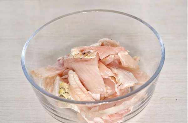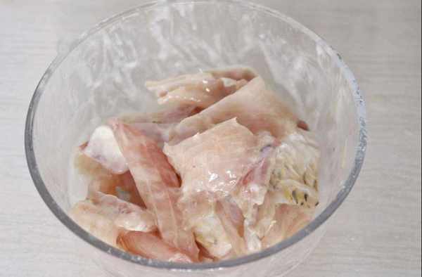 2、冷凍的草魚魚片沒有新鮮的質量好,而且魚腥味相對來說會重一些,把魚片放在大碗中多加點料酒去腥。