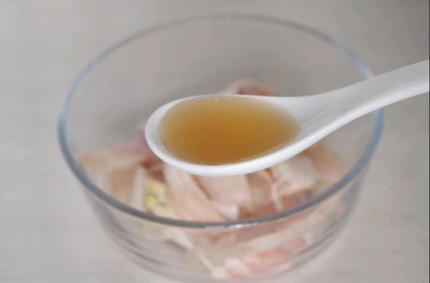 5、淀粉和蛋清混勻後抓拌上漿再進行十分鐘靜置。