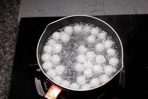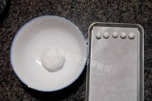 50克糯米粉,加40克溫水,揉成面團後再搓成小丸子。
