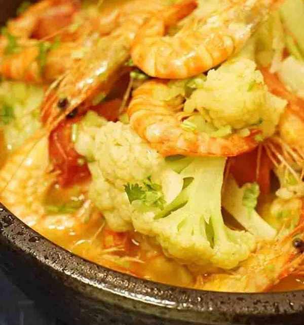 鍋中放入油燒熱,放入海蝦炒到變色,撈起備用