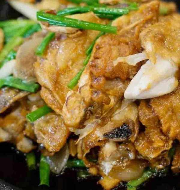 薑片和小圓蔥放入油中炸至金黃撈出,把鍋中的油倒出來後,將炸過的薑片和小圓蔥、蔥白段、大蒜倒入鍋中,加少量的鹽煸炒香味