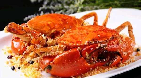 用白酒浸泡膏蟹,放入迷迭香使其喝醉,將醉蟹砍成塊,拍粉後入六成油溫炸至金黃,撈出控油。