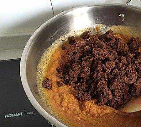 步驟小火,中途不斷攪拌。(註意,熬煮過程會不斷有氣泡冒出,液體飛濺,帶個手套,將手臂包起來,以防燙傷)