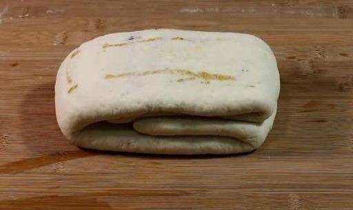 再把面團搟成長方形的厚面餅。