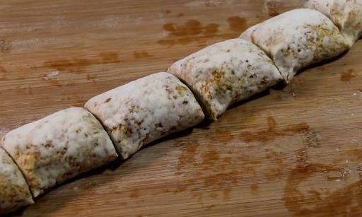 搟薄以後,再卷一遍。然後切成大小相等的劑子。