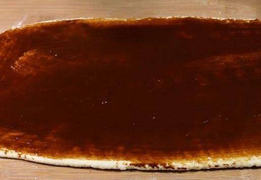 接著把面餅上均勻地刷上一層調好的紅糖麻醬。