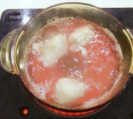 準備一鍋清水,燒開,取1/5左右步驟1中的糯米團,捏成扁餅狀,放入沸水中,直至煮熟。》如果不知道熟沒熟,可以用筷子夾開看看裡面是否已變色,還有沒有生粉。