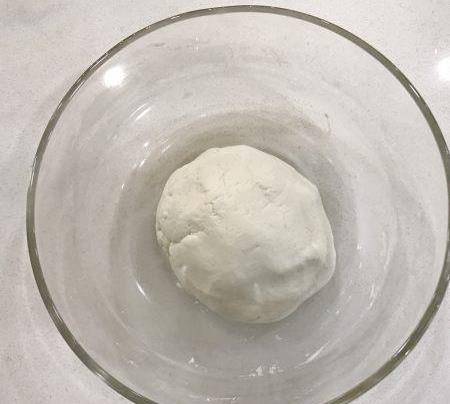 適量糯米粉放入盆中,慢慢加入溫開水,一邊倒溫水一邊用筷子攪拌,然後用手揉成軟硬適中的糯米面團。》加入糯米粉中水的量要根據糯米粉吸水情況調整,先不要一次性全部加入,先剩個20ml,看情況再加。