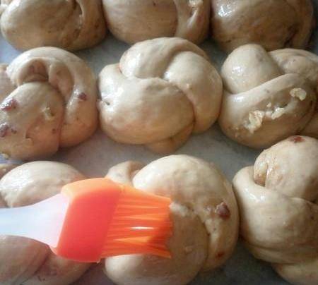 二次發酵好取出刷蛋液,取出的時候就可以預熱烤箱180度10分鐘