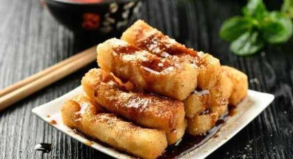 6. 再把炸好的糍粑放進去。