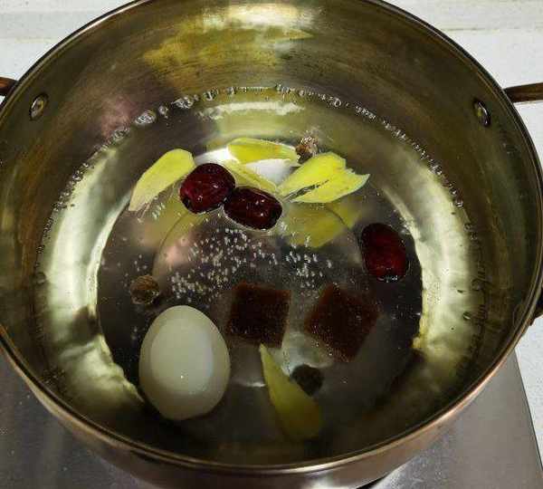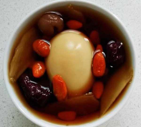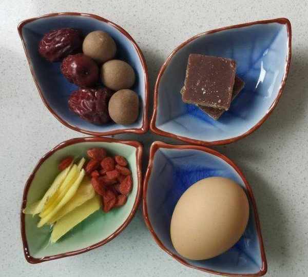 原料:雞蛋、紅糖、生薑、枸杞、桂圓、紅棗、清水。