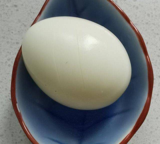 第3步、雞蛋煮熟去皮用刀在上面劃三刀。