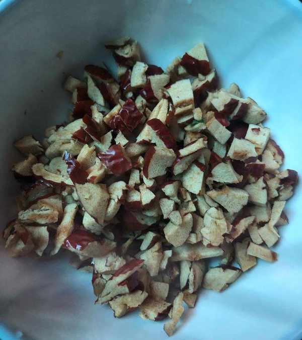 然後將備好的紅棗碎倒入。