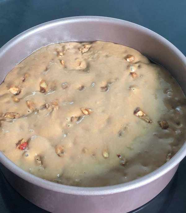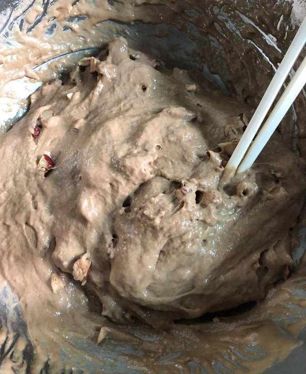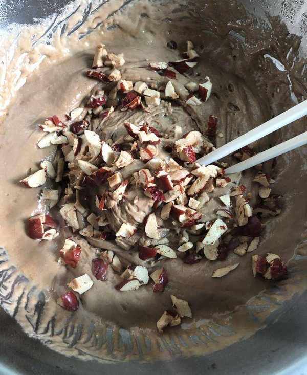 將紅棗碎均勻拌入發好的面中。