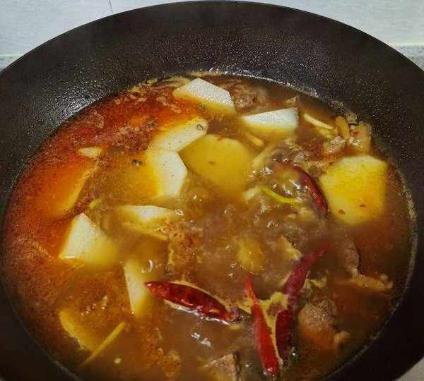 水要一次加足,中途不開蓋不加水。花椒可以祛除羊肉中的腥膻味。