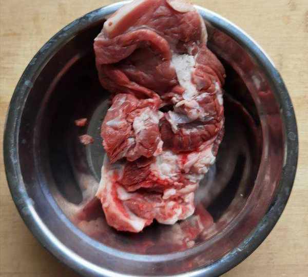 第3步、把羊肉洗幹凈切成小塊用水浸泡15分鐘祛除血水。
