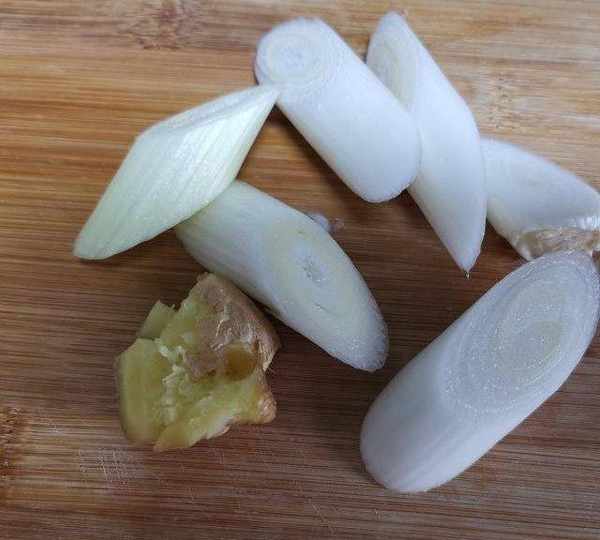 第4步、大蔥切段,薑拍松。