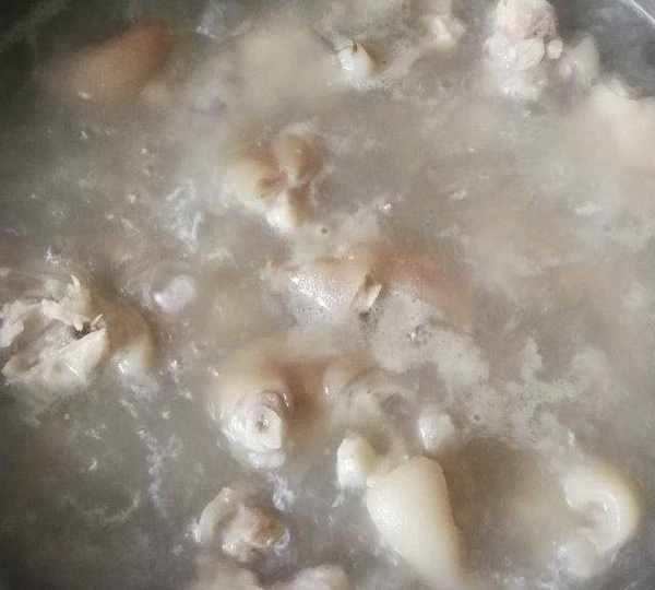 第5步、豬蹄撈出,溫水洗凈浮沫。