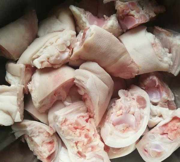 第1步、豬蹄浸泡一會兒,洗凈血水。