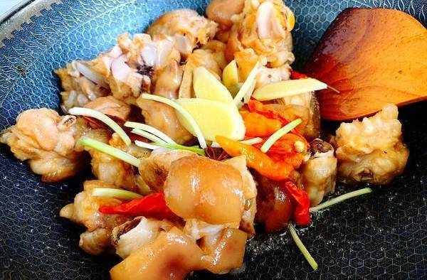 1.將豬蹄用水沖洗幹凈,然後斬成塊,鍋裡放入適量冷水,加入1大勺料酒,再放入豬蹄,水要沒過豬蹄,開大火煮開