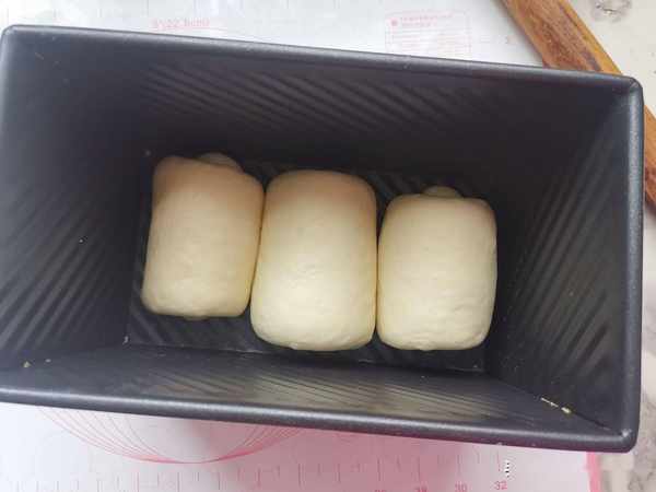 第七步:把吐司模具準備好,把做好的吐司坯子放入吐司盒,蓋上蓋子靜置發酵。