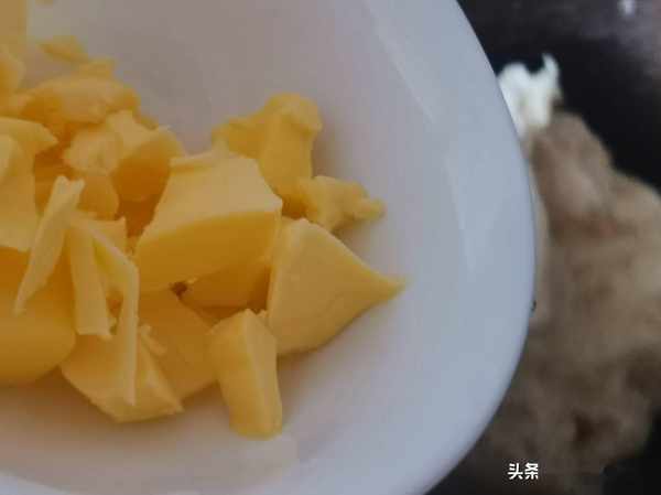 第一步:把高筋麵粉600克,白糖50克,雞蛋1個,鹽3克,牛奶290克,酵母粉4克一起放入麵包機桶內揉成團,然後加入黃油,繼續揉勻。麵包機兩個標準程式就可以完成揉面,如果沒有麵包機,用手揉也是可以的,只是費勁一點而已。