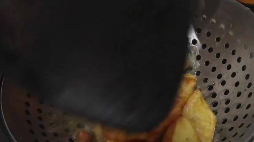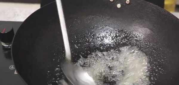 開中小火全程慢炸,這樣才能把紅薯炸透炸熟,把紅薯的外皮炸脆就可以瞭。然後倒出來控油備用,一定要把油瀝幹,這樣吃起來才不會膩。鍋中加入一勺清水,加入大半勺的白糖,把白糖熬化,全程開中小火。