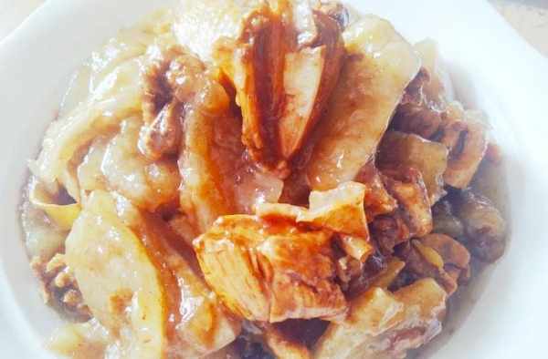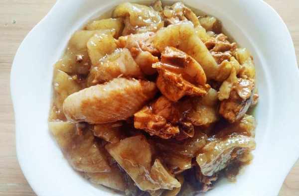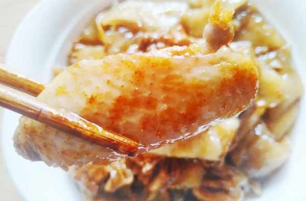 我們傢鄉人都愛種紅薯,所以紅薯在我們日常生活中起著舉足輕重的的作用。什麼紅薯丸子、烤紅薯、拔絲紅薯等輪流著吃,但是傢鄉人最愛的還是紅薯粉燒雞。雞是自傢養的土雞,比買來的小、香,配上紅薯粉做的圓子,2者滑嫩軟糯,鮮味十足,離傢幾十載的人回來都指名要吃它。