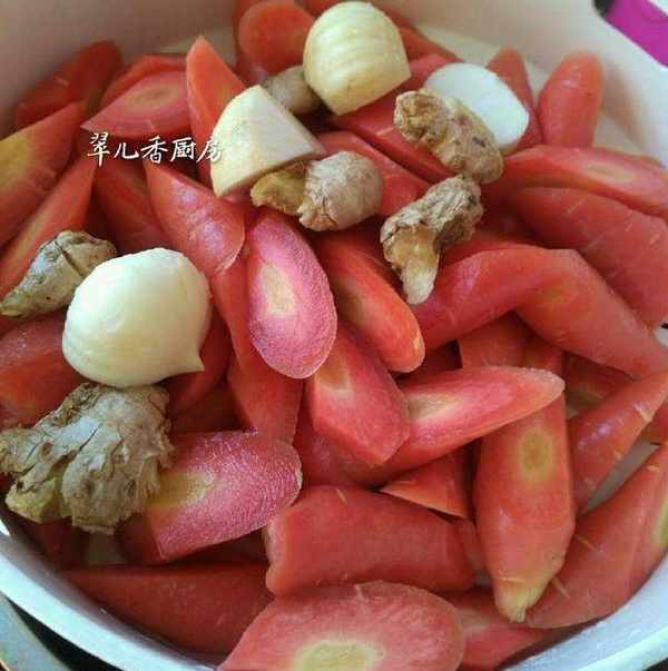 紅蘿卜不同於胡蘿卜,連長相也有區別,紅蘿卜外觀細長圓潤,顏色深紅,含糖較高,有的地方還生吃。但我們傢鄉一般用來做燒菜的多,尤其是在過年的時候,民間愛唱:紅蘿卜咪咪甜,看著看著要過年。做的有關菜品極為特色,什麼紅蘿卜燒雞,紅蘿卜燒鴨子,紅蘿卜燒肉,紅蘿卜燒牛肉……這些菜可是深得人心,但沒一個菜的做法都大同小異,佐料上也並無太大出入,我在這裡和朋友們就分享一道紅蘿卜燒肉的做法。