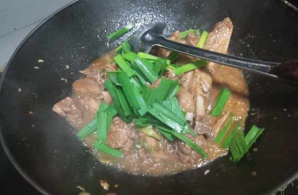 撒入蒜葉收汁即可出鍋