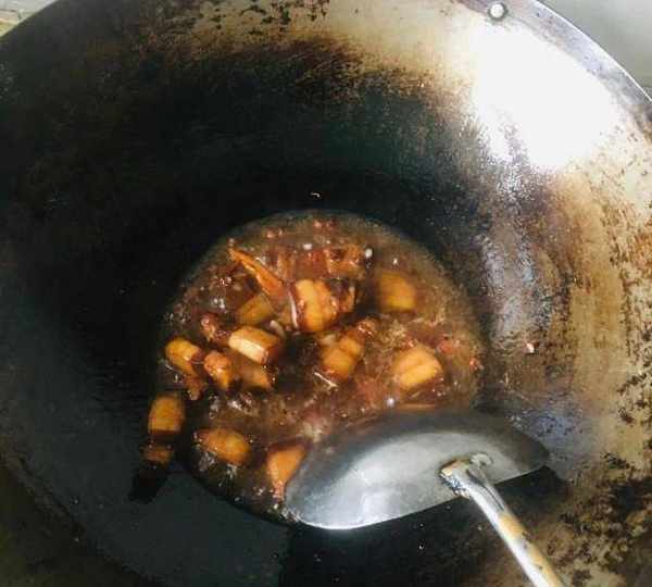 第4步、上頓剩的紅燒肉,加適量開水燒開。