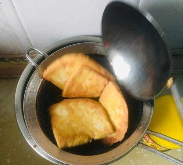 第3步、豆腐切片,煎至兩面金黃,切條備用。