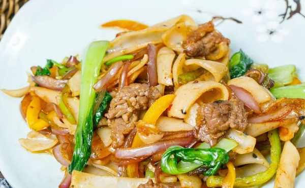 鍋中預熱,大火起火,放入蔥薑開始爆香,可以切一點牛肉絲放裡面,補充蛋白質,炒熟以後,加點料酒和五香粉調味兒,將蔬菜和雞蛋等都放進去炒熟,接著將涼皮倒進去,翻炒至熟,個人建議不用蓋鍋蓋。