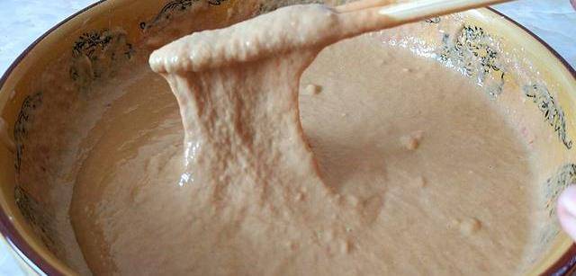 3、把所有食材全部攪拌均勻,攪拌至沒有幹面粉就行,最後的面糊是這樣的比較黏稠的。放到溫暖的地方醒發至1.5倍大。出現很多大氣泡就是發好瞭。