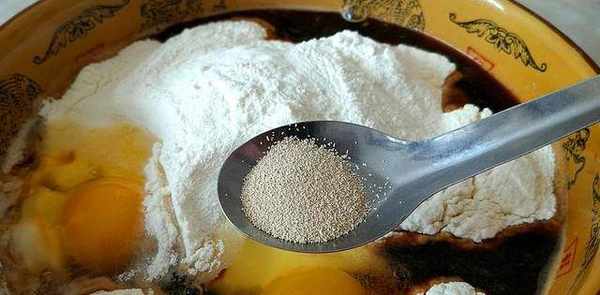 2、再向裡面加入兩個雞蛋,三克酵母粉,一克小蘇打。
