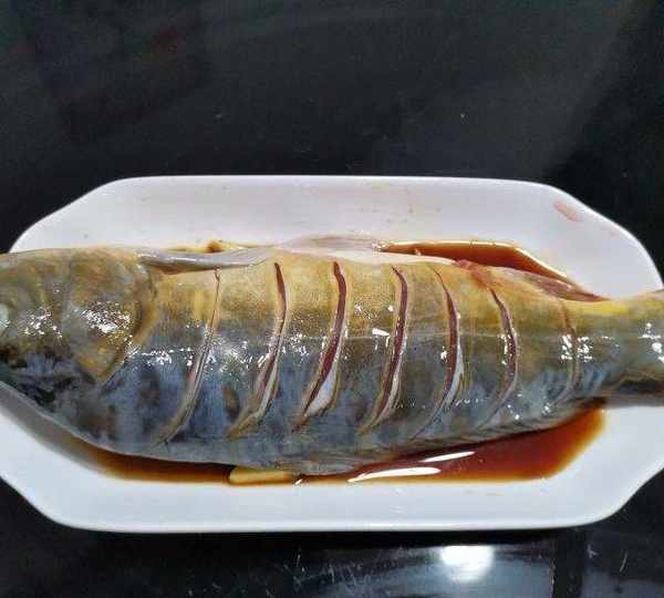 第2步、剖好放鹽、蒸魚豉油、生抽、薑片醃漬一個晚上。