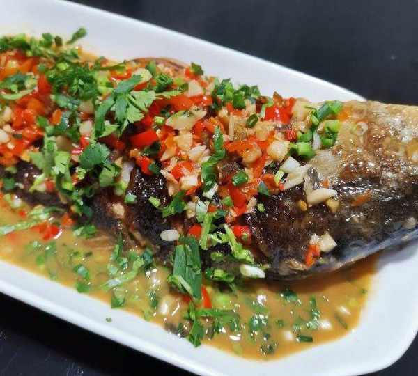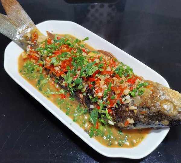 原料:金桂魚、紅辣椒、大蒜、蔥、香菜、薑、植物油、鹽、老抽、生抽。